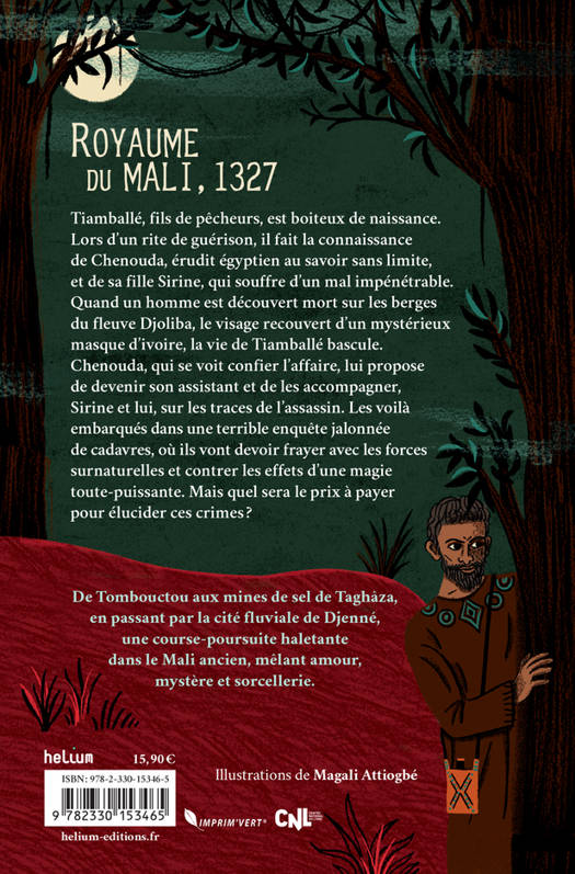 Royaume du Mali, 1327 Tiamballé, fils de pêcheurs, est boiteux de naissance. Lors d'un rite de guérison, il fait la connaissance de Chenouda, érudit égyptien au savoir sans limite, et de sa fille Sirine, qui souffre d'un mal impénétrable. Quand un homme est découvert mort sur les berges du fleuve Djoliba, le visage recouvert d'un mystérieux masque d'ivoire, la vie de Tiamballé bascule. Chenouda, qui se voit confier l'affaire, lui propose de devenir son assistant et de les accompagner, Sirine et lui, sur les traces de l'assassin. Les voilà embarqués dans une terrible enquête jalonnée de cadavres, où ils vont devoir frayer avec les forces surnaturelles et contrer les effets d'une magie toute-puissante. Mais quel sera le prix à payer pour élucider ces crimes ?