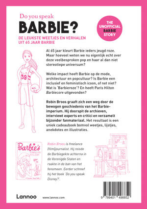 Al 65 jaar kleurt Barbie ieders jeugd roze. Maar hoeveel weten we nu eigenlijk echt over deze veelbesproken pop en haar al dan niet stereotiepe universum? Welke impact heeft Barbie op de mode, architectuur en popcultuur? Is Barbie een inclusief en feministisch icoon, of net niet? Wat is 'Barbieroze'? En heeft Paris Hilton Barbiecore uitgevonden? Robin Broos graaft zich een weg door de bewogen geschiedenis van het Barbie-imperium. Hij doorspit de archieven, interviewt experts en critici en verzamelt bijzonder fanmateriaal. Het resultaat is een uniek cadeauboek bomvol weetjes, lijstjes, anekdotes en illustraties.