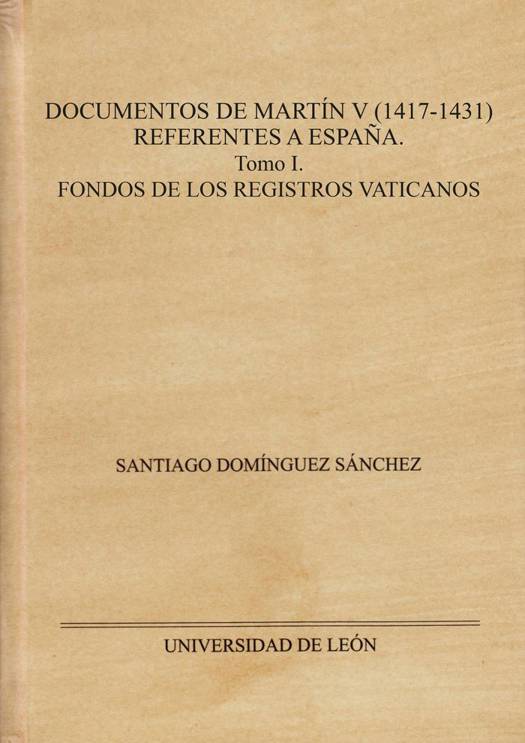 Con el apoyo del Instituto LOU de Humanismo y Tradición Clásica de la Universidad de León nace esta monografía dedicada al estudio crítico y edición de una significativa parte de los documentos, unos sescientos, la mayor parte de ellos inéditos o poco conocidos, que Martín V (1417-1431) dirigió a diversas personas e instituciones de la Hispania medieval. Este es un primer tomo consagrado a la amplísima documentación de este pontífice. En él hemos recogido los diplomas procedentes de los Registros Vaticanos, que son casi siempre “letras de Curia” o de provisión de cargos y beneficios especialmente relevantes para la Sede.