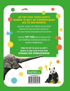 De Top Tien ‘Dodelijkste dieren’ is niet zo voorspelbaar als je zou denken. Geloof jij dat het dodelijkste dier een witte haai of een leeuw is? Of misschien een giftige spin? In deze Top Tien kom je erachter dat sommige dieren een dodelijk wapen verbergen. Denk jij dat je alles al weet? Bereid je dan voor op een paar gevaarlijke verrassingen!