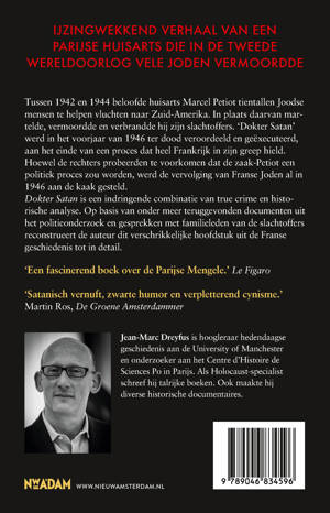 Huisarts Marcel Petiot beloofde tussen 1942 en 1944 tientallen Joodse mensen te helpen vluchten naar Zuid-Amerika. In plaats daarvan martelde, vermoordde en verbrandde hij zijn slachtoffers. 'Dokter Satan' werd ter dood veroordeeld en geëxecuteerd in het voorjaar van 1946, aan het einde van een proces dat heel Frankrijk in de ban hield. Hoewel de rechters probeerden te voorkomen dat de zaak-Petiot een politiek proces zou worden, werd al in 1946 de vervolging van Franse Joden aan de kaak gesteld. Dokter Satan is het indringende samengaan van true crime en historische analyse. Op basis van onder meer opgespoorde documenten uit het politieonderzoek en gesprekken met familieleden van de slachtoffers weet de auteur dit verschrikkelijke hoofdstuk uit de geschiedenis van de Tweede Wereldoorlog nauwgezet te reconstrueren.