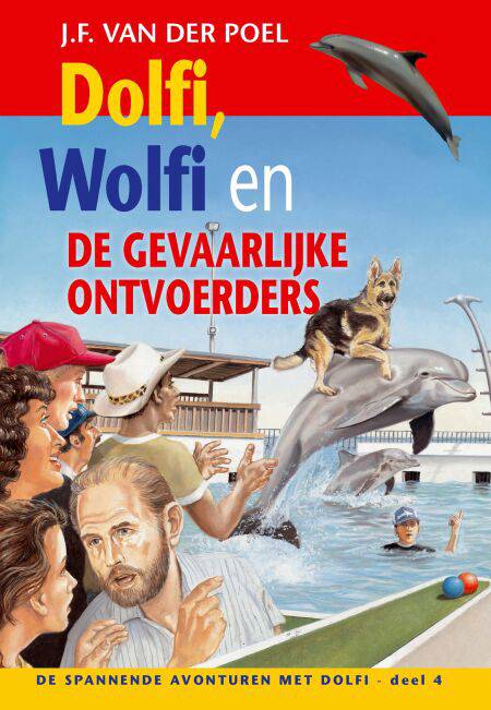 In J.F. van der Poels vierde deel van de serie 'De spannende avonturen met Dolfi', getiteld 'Dolfi, Wolfi en de gevaarlijke ontvoerders', komen Dolfi en Wolfi in gevaar tijdens een show in het dolfinarium. Mirja heeft in de krant gelezen over een dolfijn die ene vliegtuig na kan doen. Samen met Andy gaat ze naar het dolfinarium. Wolfi, de herdershond, mag ook mee. Maar Dolfi, de slimme dolfijn, zwemt zelf naar het dolfinarium, dat in een baai van de zee ligt. Terwijl de show bezig is, springt hij over de hekken in het bassin. Wolfi ziet zijn vriendje al snel en samen met Mirja en Andy voeren ze een spectaculaire show op. Alle toeschouwers klappen en de dolfijnentrainers staan verbaasd te kijken. Maar als ze weer naar huis willen, gaat het helemaal mis. De trainer ziet wel wat in de kunstjes van Dolfi en Wolfi. Hij wil Dolfi in het dolfinarium houden… J.F. van der Poel kan spannend vertellen. Hij heeft al een groot aantal kinderboeken en romans geschreven. Voor zijn gehele oeuvre werd de schrijver in 2013 benoemd tot Ridder in de Orde van Oranje Nassau. 'Dolfi en de dolfijnjagers' is het tweede deel in de populaire serie 'De spannende avonturen met Dolfi'. Lees ze allemaal.