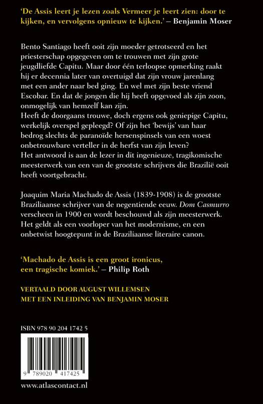 Bento Santiago heeft ooit zijn moeder getrotseerd en het priesterschap opgegeven om te trouwen met zijn grote jeugdliefde Capitu. Maar door één terloopse opmerking raakt hij er decennia later van overtuigd dat zijn vrouw jarenlang met een ander naar bed ging. En wel met zijn beste vriend Escobar. En dat de jongen die hij heeft opgevoed als zijn zoon, onmogelijk van hemzelf kan zijn. Heeft de doorgaans trouwe, doch ergens ook geniepige Capitu, werkelijk overspel gepleegd? Of zijn het 'bewijs' van haar bedrog slechts de paranoïde hersenspinsels van een woest onbetrouwbare verteller in de herfst van zijn leven? Het antwoord is aan de lezer in dit ingenieuze, tragikomische meesterwerk van een van de grootste schrijvers die Brazilië ooit heeft voortgebracht.