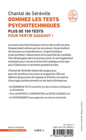 Tests de lettres, de chiffres, de séries, de matrices, d’observation... vous trouverez, réunis dans ce livre, tous les nouveaux tests que vous serez amenés à rencontrer lors d’entretiens d’embauche ou d’évaluation.