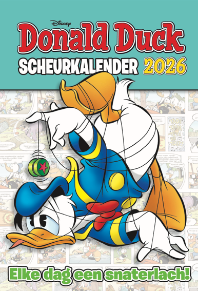 at wordt lachen geblazen dit jaar met deze megadikke scheurkalender! Want jij begint elke dag met een knotsgek stripje over Donald, de neefjes, oom Dagobert, Katrien en nog veel meer inwoners van Duckstad. Een heel jaar lang! Als 2026 geen spetterend jaar wordt, dan eet Donald zijn hoed op. Veel scheur- en leesplezier!