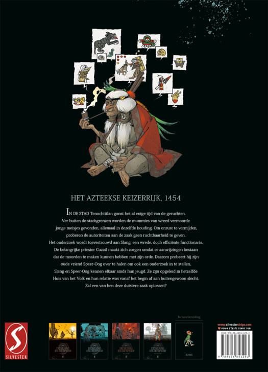 'De Slang en de Speer' is een vijfdelige thriller/detective in de wereld van de Azteken, geschreven en getekend door Hub ('Okko', 'Aslak').