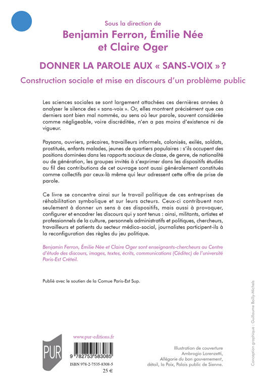 Les sciences sociales se sont largement attachées ces dernières années à analyser le silence des « sans-voix ». Or, elles montrent précisément que ces derniers sont bien mal nommés, au sens où leur parole, souvent considérée comme négligeable, voire discréditée, n'en a pas moins d'existence ni de vigueur.