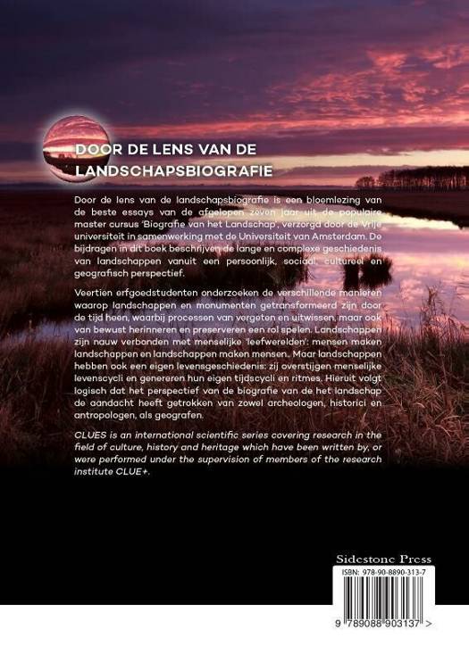 Door de lens van de landschapsbiografie is een bloemlezing van de beste essays van de afgelopen zeven jaar uit de populaire master cursus 'Biografie van het Landschap', verzorgd door de Vrije universiteit in samenwerking met de Universiteit van Amsterdam. De bijdragen in dit boek beschrijven de lange en complexe geschiedenis van landschappen vanuit een persoonlijk, sociaal, cultureel en geografisch perspectief.