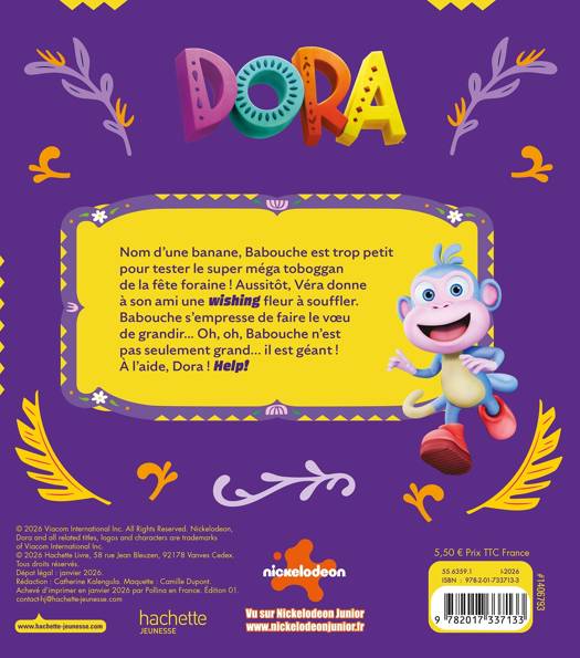 wishing fleur à souffler. Babouche s’empresse de faire le voeu de grandir... Oh, oh, Babouche n’est pas seulement grand… il est géant ! À l’aide, Dora !