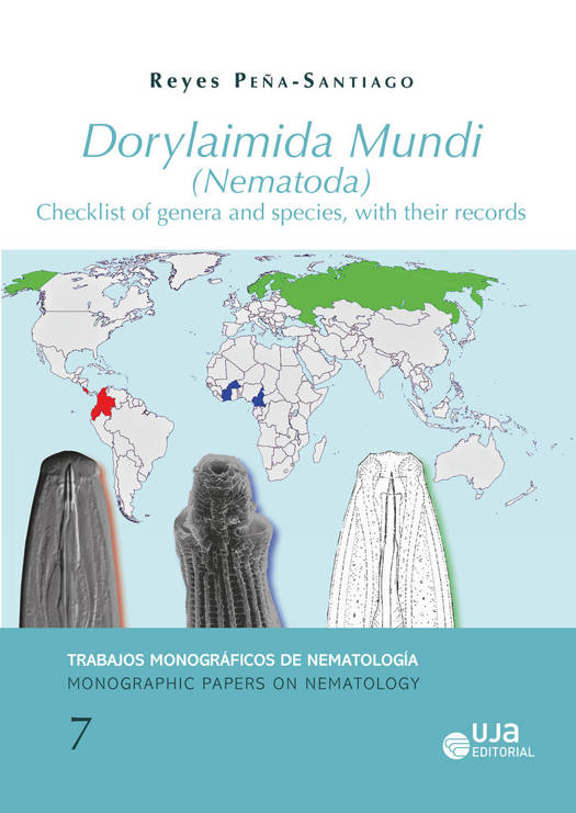 Dorylaims, the members of the order Dorylaimida, probably are the most diverse ordinal taxon within the phylum Nematoda. Because of their worldwide distribution in continental habitats and their variety of life strategies, they are regarded as good bioindicators of environmental health. This book provides a compendium of available information about dorylaimid taxa and their geographical records. Based on the scrutiny of a total of 3385 documents, mainly journal papers, but also books and monographs, it includes 3453 nominal species (3088 valid, 244 synonymous and 121 inquirendae or incertae sedis) and 363 nominal genera (285 valid, 75 synonymous, 3 inquirenda), which were described until the end of 2020. The book consists of four recognizable sections. Most content focuses on updating the catalogue of taxa, together with the references recording each of them. Besides, geographical (country, archipelago, etc.) and environmental (habitat) data about every species are also given. The second part presents the references mentioned in the main body of the work. The third section offers an alphabetical list of generic and subgeneric names, whereas the fourth one gives an alphabetical list of species names. The book is addressed especially, but not only, to young researchers, who very often face serious difficulties to find suitable bibliographic references to confirm species identification or simply to access previous records of a particular taxon in a definite territory. Thus, it aims to assist and to guide any nematologist interested in the exploration of dorylaimid diversity and its geographical distribution. Los doriláimidos, componentes del orden Dorylaimida, son probablemente el grupo ordinal más diverso dentro del filo Nematoda. Debido a su distribución mundial en hábitats continentales y a la variedad de estrategias vitales que presentan, son considerados buenos bioindicadores de calidad ambiental. Este libro presenta un compendio de la información disponible sobre los taxones doriláimidos y sus citas geográficas. A partir del escrutinio de un total de 3385 documentos, principalmente artículos de revistas, pero también libros y monografías, incluye 3453 especies nominales (3088 válidas, 244 sinónimas y 121 inquirendae o incertae sedis) y 363 géneros nominales (285 válidos, 75 sinónimos, 3 inquirenda) que habían sido descritos hasta finales de 2020. El libro se compone de cuatro apartados básicos. La mayor parte de su contenido se dedica a actualizar el inventario de los taxones doriláimidos, junto con las referencias que han tratado cada uno de ellos. Además, se aporta información geográfica (país, archipiélago, etc.) y ambiental (hábitat) sobre cada especie. La segunda sección presenta las referencias mencionadas en el cuerpo principal del texto. Una lista alfabética de los géneros y subgéneros se provee en la tercera parte, en tanto que la cuarta ofrece la lista alfabética de especies. Esta obra va dirigida especialmente, pero no solo, a investigadores jóvenes, que con frecuencia experimentan serias dificultades a la hora de encontrar bibliografía adecuada para confirmar la identificación de las especies que encuentran o simplemente para acceder a las citas previas de un taxón particular en un territorio determinado. Por tanto, persigue ayudar y dirigir a cualquier nematólogo interesado en el estudio de la diversidad de doriláimidos y de su distribución.