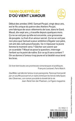 Début des années 40. Samuel Poujol, vingt-deux ans, est le fils unique du patron des Ateliers Poujol, une fabrique de sous-vêtements de luxe, dans le Gard. Maud, dix-sept ans, y travaille depuis quelques mois. Ça ne se voit pas qu’elle est enceinte, une grossesse de poupée. Le fruit d’un amour secret. Ça ne se voit pas non plus que Samuel a pour ambition d’égaler son père, cet ami des Juifs pourchassés. Va-t-il épouser la jeune femme le moment venu ? Gâcher son avenir par un scandale ? Maud se pose la question, la pose à l’enfant sur le point de naître. Est-ce qu’il sera content ? On se donne à l’amour trop jeune et la fatalité vous tend les bras.
