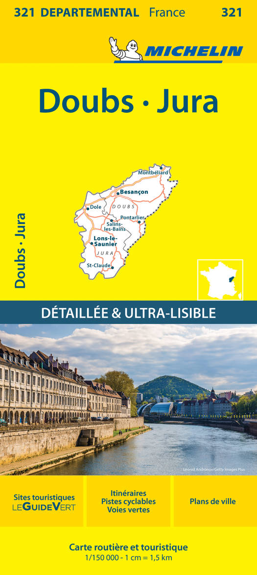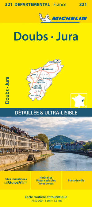 Met een schaal van 1/150 000 oftewel 1cm = 1,5km en reliëf van satellietbeeld biedt de Michelin kaart DEPARTEMENT Doubs, Jura u een exact beeld van de topografie. Dankzij de aangeraden toeristische trajecten laat ze u toe om alle rijkdom en plaatselijke bezienswaardigheden grondig te verkennen en de mooiste toeristische sites te ontdekken, uitgekozen en aangeduid door Michelin. U zal er ook de nieuwe nummering van de nationale en departementale wegen ontdekken,alsook stadsplattegronden van de belangrijkste steden.