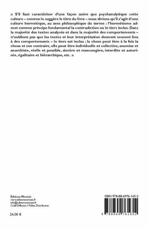 L'objet de ce livre est de saisir un aspect fondamental de la culture marocaine et arabo-musulmane manifesté principalement entre son ambivalence permanente et son oscillation constante entre la chose et son contraire dans divers textes et contextes : le corps, la société, le culinaire, la sexualité. Il s'agit aussi de voir comment la culture marocaine est vue de l'extérieur, par exemple comment est vue la culture culinaire marocaine par les voyageurs français du XIXe siècle ou comment les anthropologues américains installés au Maroc dans les années soixante considéraient certains phénomènes comme la circoncision, Aicha Kandicha, Le Marocain.