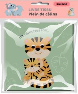 Un livre en tissu avec des illustrations de parents, humains et animaux, enlaçant leur progéniture.