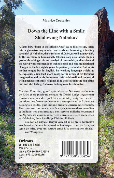 Maurice Couturier, a distinguished specialist of Vladimir Nabokov and translator of Lolita, likes to say that he was born in the Middle Ages. In his autobiography, packed with countless poetic or erotic intertexts, he humorously tells his own story as a little boy in a strict catholic environment, as an international scholar between France and the United States, as a literary critic and specialist of censorship, as well as a novelist and translator of David Lodge, taking time on the way to analyze the colossal technological and communicational evolutions of the last eighty years and their impact on our societies. Not in his mother tongue but in English, his working language, which, he claims, lends itself more readily to the needs of his tortuous and playful imagination. Maurice Couturier, grand spécialiste de Vladimir Nabokov et traducteur de Lolita, aime à dire qu'il est né au Moyen Age. Dans son autobiographie, hantée par une multitude d'intertextes poétiques ou érotiques, il raconte avec humour et truculence son enfance dans un milieu fortement marqué par la religion catholique, sa carrière universitaire entre la France et les États-Unis, son parcours en tant que critique littéraire, spécialiste de la censure, romancier et traducteur de David Lodge, analysant au passage les impressionnants progrès technologiques et communicationnels qui ont marqué ces quatre-vingt dernières années et leur impact civilisationnel. Il ne le fait pas dans sa langue maternelle mais en anglais, sa langue de travail, laquelle, dit-il, se prête davantage aux besoins de son imagination tortueuse et fantasque.