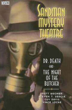 Writers Matt Wagner and Steven T. Seagle and artists Guy Davis and Vince Locke continue their masterly exploration of the pulp detective genre with this fifth collection of Sandman Mystery Theatre as Wesley Dodds is driven by his dreams to fight injustice in the dark of night. Donning a gas mask, fedora, business suit and cape, Dodds goes after evildoers as the vigilante known only as the Sandman.\nDr. Death and the Night of the Butcher follows Wesley Dodds through two new cases of serial murderers, each more grisly than the last. But the real challenge for the Sandman will be holding on to his paramour, Dian Belmont, once she finally uncovers his secret career.