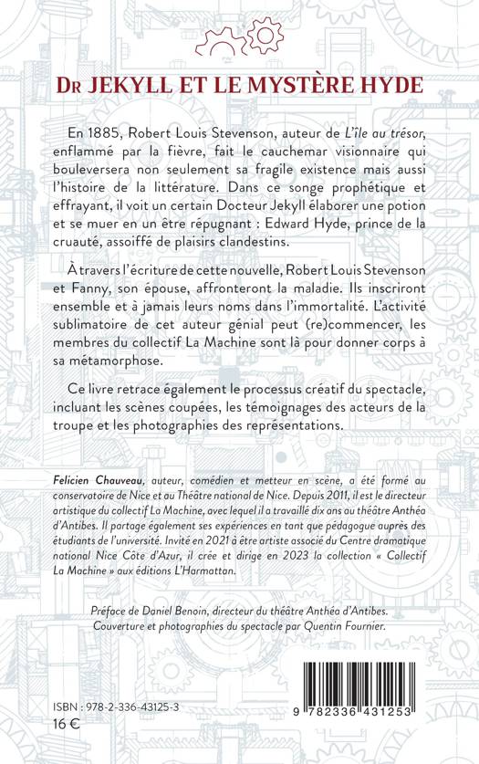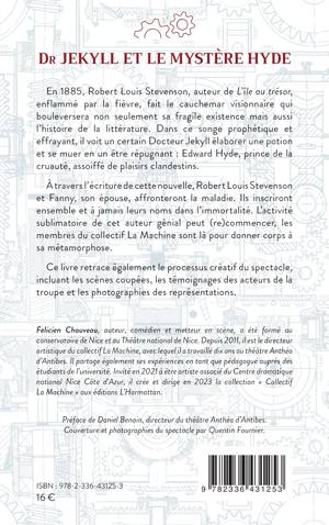 En 1885, Robert Louis Stevenson, auteur de L'île au trésor, enflammé par la fièvre, fait le cauchemar visionnaire qui bouleversera non seulement sa fragile existence mais aussi l'histoire de la littérature. Dans ce songe prophétique et effrayant, il voit un certain Docteur Jekyll élaborer une potion et se muer en un être répugnant: Edward Hyde, prince de la cruauté, assoiffé de plaisirs clandestins. À travers l'écriture de cette nouvelle, Robert Louis Stevenson et Fanny, son épouse, affronteront la maladie. Ils inscriront ensemble et à jamais leurs noms dans l'immortalité. L'activité sublimatoire de cet auteur génial peut (re)commencer, les membres du collectif La Machine sont là pour donner corps à sa métamorphose. Ce livre retrace également le processus créatif du spectacle, incluant les scènes coupées, les témoignages des acteurs de la troupe et les photographies des représentations.