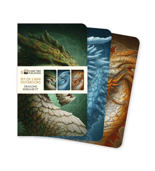 New title in the beautiful collection of mini, foiled, and ruled and blank notebooks, each pack features three designs by some of the most popular artists. Beautiful and practical, these are perfect for all art lovers! This Dragons Set of 3 Mini Notebooks features a collection of three mini, foiled notebooks with alternating lined and blank pages. Each notebook has a different design by artist Kerem Beyit: Belmothur, Ice Dragon and Oriental Dragon. With a sturdy cover and rounded corners, they are perfect to be carried everywhere!