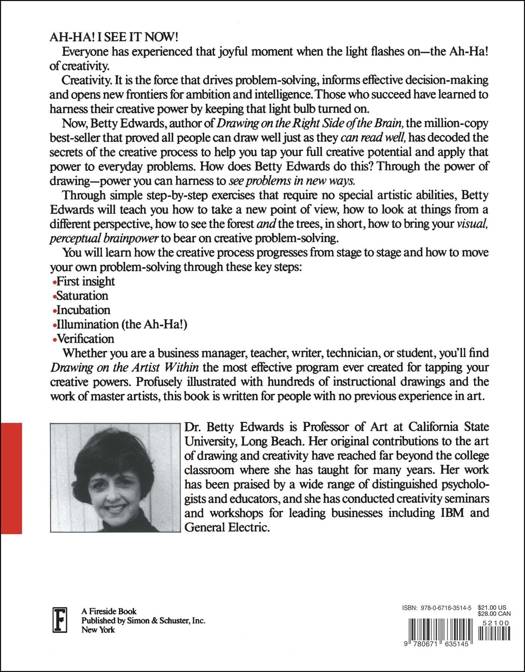 can read well, has decoded the secrets of the creative process to help you tap your full creative potential and apply that power to everyday problems. How does Betty Edwards do this? Through the power of drawing -- power you can harness to