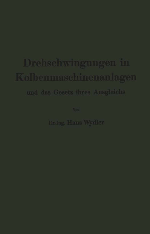 Drehschwingungen in Kolbenmaschinenanlagen Und Das Gesetz Ihres Ausgleichs