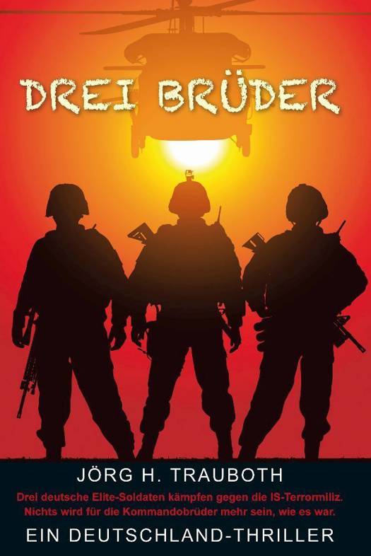 Marc Anderson und seine beiden Kommandobrüder Thomas und Tim sind Elitesoldaten im geheimnisumwitterten deutschen Kommando Spezialkräfte (KSK). Zusammen mit den amerikanischen Navy Seals retten sie in einem Feuergefecht gegen die Taliban die im Hindukusch abgestürzte US-Crew eines F-15 Kampfflugzeuges.Doch bei der nächsten Rettungsaktion von zwei deutschen Geiseln, die im Nordirak vom Islamischen Staat (IS) entführt wurden, verlässt das Glück die drei Unzertrennlichen. Die perfekt geplante Operation Eagle wird verraten. Die Bundeskanzlerin und ihr Krisenstab in Berlin werden in einer Video-Live-Schaltung Zeugen der Katastrophe, in der Marc, Thomas und Tim nur knapp dem Tod entkommen. Die Jagd des Bundeskriminalamtes nach dem Verräter beginnt. Das KSK gerät politisch unter Beschuss. Die drei Kommandobrüder quittieren ihren Dienst und beginnen einen neuen Job als Sicherheitsbegleiter bei einer Kölner Drogerie-Kette. Aber der IS-Terror lässt sie auch hier nicht los: Als der Unternehmersohn Johannes Ericson und seine Lebensgefährtin Karina Marie vom IS entführt und die deutsche Regierung erpresst werden, sind die drei Brüder wieder gefordert. Es beginnt ein Wettlauf mit der Zeit.Mit Drei Brüder hat Jörg H. Trauboth mehr als einen Roman geschrieben, indem er vor aktuellem politischen Terror-Hintergrund sein überragendes Wissen als Krisenmanager, Militär- und Terrorexperte einbringt und damit auf Anhieb einen Deutschland-Thriller der Extraklasse vorlegt. In einer Story sagt er geradezu hellseherisch voraus, was der islamistische Terror mit uns macht und welche Antworten notwendig sind.