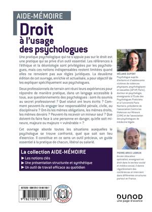 Une pratique psychologique qui ne s’appuie pas sur le droit est une pratique qui se prive d’un outil essentiel. Les références à l’éthique et la déontologie sont privilégiées par les psychologues, mais ces notions indispensables restent limitées quand elles ne renvoient pas aux règles juridiques. La deuxième édition de cet ouvrage, enrichie et actualisée, a pour objectif de les expliquer spécifiquement aux psychologues.