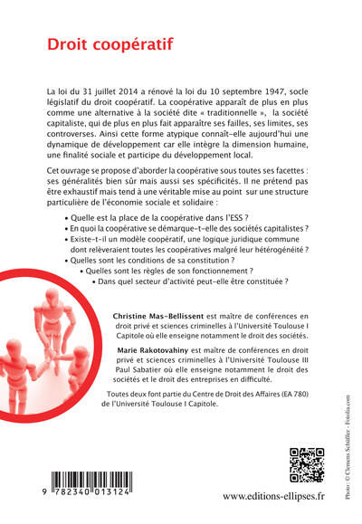 Cet ouvrage se propose d’aborder la coopérative sous toutes ses facettes : ses généralités bien sûr mais aussi ses spécificités. Il ne prétend pas être exhaustif mais tend à une véritable mise au point sur une structure particulière de l’économie sociale et solidaire :