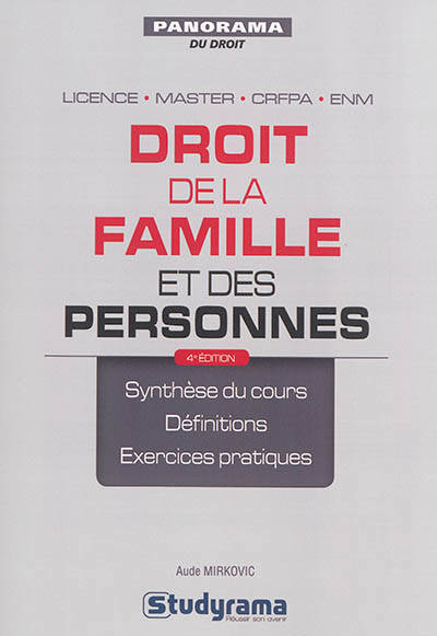 La 4e édition de cet ouvrage couvre l'ensemble du programme de droit de la famille et des personnes (généralement enseigné en Licence 1 des facultés de droit). Il traite des questions fondamentales du droit civil : les différents types de personnes, l'état civil, les relations interpersonnelles, le mariage et sa rupture, la filiation, etc. Il aborde, sous l'angle juridique, les sujets centraux liés à la bioéthique.