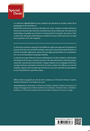 Le droit des personnes regroupe l’ensemble des règles qui régissent l’acquisition et la protection de la personnalité juridique, ainsi que la capacité des sujets de droit. Le droit de la famille réglemente, quant à lui, les règles qui président à la constitution, à la vie et à la dissolution du groupe familial.
