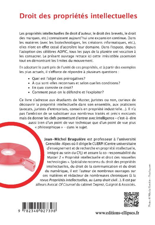 Ce livre s’adresse aux étudiants de Master, juristes ou non, curieux de découvrir la propriété intellectuelle dans son ensemble, aux praticiens (avocats, juristes d’entreprises, conseils en propriété industrielle…). Il n’a pas l’ambition de se substituer aux nombreux traités et précis existants mais de donner les clefs permettant d’entrer avec intelligence – c’est-à-dire aussi bien d’un point de vue technique que d’un point de vue plus « philosophique » - dans le sujet.