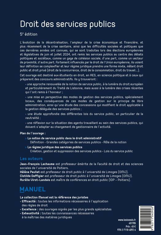 La notion, les catégories et le régime juridique du service public ne peuvent donc plus être traités de manière purement interne. Le droit applicable au service public est désormais très varié, le droit de la concurrence ou le droit de la consommation trouvant alors un terrain privilégié. Les exigences d'évaluation, de performance ont fait irruption dans ce domaine jadis protégé. Les principes fondamentaux connaissent eux aussi une profonde évolution. À côté des lois classiques, l'ouvrage accorde une place importante au principe de neutralité, qui participe de la problématique de la place et du rôle du service public dans la société.