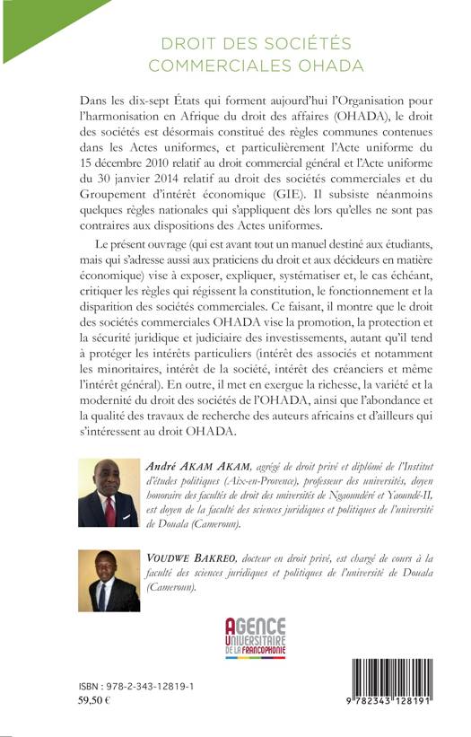 Ce livre vise à exposer, expliquer, systématiser et critiquer les règles qui régissent la constitution, le fonctionnement et la disparition des sociétés commerciales. Il montre que le droit des sociétés commerciales OHADA vise la promotion, la protection et la société judiciaire des investissements, autant qu'il tend à protéger les intérêts particuliers. En outre, il met en exergue la richesse, la variété et la modernité du droit des sociétés de l'OHADA, ainsi que l'abondance et la qualité des travaux de recherche des auteurs africains et d'ailleurs qui s'intéressent au droit OHADA.