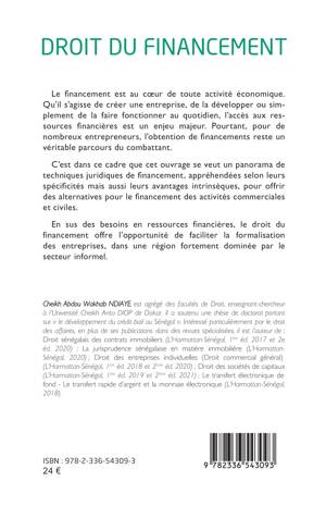 Le financement est au cœur de toute activité économique. Qu’il s’agisse de créer une entreprise, de la développer ou simplement de la faire fonctionner au quotidien, l’accès aux ressources financières est un enjeu majeur. Pourtant, pour de nombreux entrepreneurs, l’obtention de financements reste un véritable parcours du combattant. C’est dans ce cadre que cet ouvrage se veut un panorama de techniques juridiques de financement, appréhendées selon leurs spécificités mais aussi leurs avantages intrinsèques, pour offrir des alternatives pour le financement des activités commerciales et civiles. En sus des besoins en ressources financières, le droit du financement offre l’opportunité de faciliter la formalisation des entreprises, dans une région fortement dominée par le secteur informel.