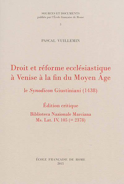 Cet ouvrage offre la première édition critique de la compilation synodale – autrement qualifiée de Synodicon – réalisée en 1438 par Lorenzo Giustiniani, évêque de Castello et futur patriarche de Venise. Ce texte majeur de l’histoire ecclésiastique vénitienne, dont les précédentes éditions s’avéraient toutes fautives et porteuses de contresens, offrait également l’intérêt d’attirer l’attention sur un genre longtemps négligé par l’historiographie, celui des compilations synodales, qui tendent pourtant à se multiplier, à partir des premières années du XVe siècle, dans de nombreux diocèses de l’Europe occidentale. Ainsi l’édition critique du Synodicon Giustiniani s’accompagne-t-elle ici d’un essai introductif qui, en prenant appui sur l’exemple vénitien, tente par le biais d’une démarche comparatiste de mieux saisir le contexte de composition de ces recueils ainsi que les mécanismes par lesquels les différentes réformes épiscopales de la fin du Moyen Âge ont pu contribuer à l’élaboration de droits diocésains originaux et particuliers.