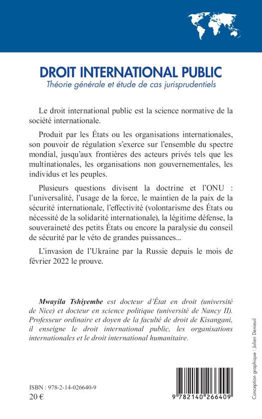 Le droit international public est la science normative de la société internationale. Produit par les États ou les organisations internationales, son pouvoir de régulation s'exerce sur l'ensemble du spectre mondial, jusqu'aux frontières des acteurs privés tels que les multinationales, les organisations non gouvernementales, les individus et les peuples. Plusieurs questions divisent la doctrine et l'ONU: l'universalité, l'usage de la force, le maintien de la paix de la sécurité internationale, l'effectivité, la légitime défense, la souveraineté des petits États ou encore la paralysie du conseil de sécurité par le véto de grandes puissances... L'invasion de l'Ukraine par la Russie depuis le mois de février 2022 le prouve.