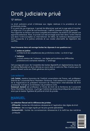 Partie 1 : L'action en justice Livre 1 : La juridictionTitre 1 : Théorie de la juridiction civile Titre 2 : Compétence des juridictions civiles Livre 2 : Le droit d'agir Titre 1 : Théorie de l'action Titre 2 : Régime de l'action Partie 2 : L'instance Livre 1 : Le droit commun de l'instance Titre 1 : Théorie de l'instance Titre 2 : Cours de l'instance Livre 2 : Le droit spécial de l'instance Titre 1 : Règles particulières à chaque juridiction étatique Titre 2 : Règles particulières à l'arbitrage
