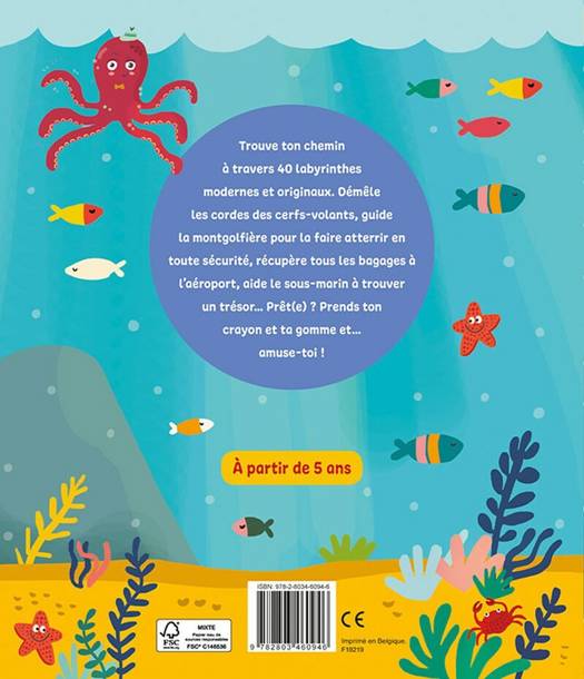 Trouve ton chemin à travers 40 labyrinthes modernes et originaux. Démêle les cordes des cerfs-volants, guide la montgolfière pour la faire atterrir en toute sécurité, récupère tous les bagages à l'aéroport, aide le sous-marin à trouver un trésor… Prêt(e) ? Prends ton crayon et ta gomme et… amuse-toi ! Pour les enfants à partir de 5 ans
