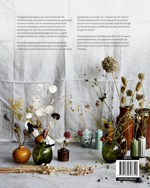 Bloemkunstenaar Bex Partridge geeft praktisch advies over hoe je bloemen kweekt en plukt, met uitvoerige beschrijvingen van de vele manieren waarop je bloemen, zaaddoosjes en gebladerte kunt drogen, en biedt eindeloosinspiratie voor de styling van droogbloemen.