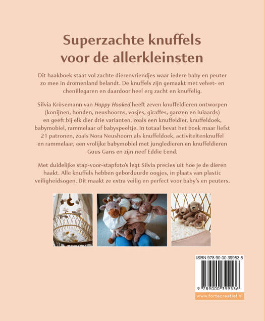 De heerlijk zachte gehaakte knuffels in dit boek zijn perfect voor baby’s en peuters. Ze zijn vooral zo bijzonder zacht en knuffelig doordat ze gemaakt zijn met chenillegaren. Silvia Krüsemann heeft acht knuffeldieren ontworpen, zoals konijnen, hondjes, ganzen, dino's en nog veel meer. Elk dier heeft ze op drie manieren verwerkt, zoals in een knuffeldier, een snuggler, een mobiel, rammelaar of een babyspeeltje.