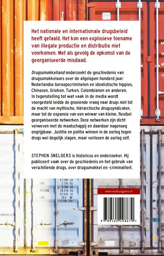 Drugssmokkelland onderzoekt de geschiedenis van drugssmokkelaars over de afgelopen honderd jaar: Nederlandse beroepscriminelen en idealistische hippies, Chinezen, Grieken, Turken, Colombianen en anderen. In tegenstelling tot wat vaak in de media wordt voorgesteld leidde de groeiende vraag naar drugs niet tot de macht van mythische, hiërarchische drugssyndicaten, maar tot de expansie van een wirwar van kleine, flexibel georganiseerde netwerken. Deze netwerken zijn dicht verweven met de maatschappij en daardoor nagenoeg ongrijpbaar. Justitie en politie winnen in de oorlog tegen drugs wel degelijk slagen, maar verliezen de oorlog zelf.