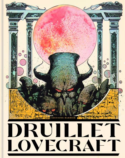 Druillet et Lovecraft sont deux références incontournables – Philippe Druillet, dont l’œuvre foisonnante a bousculé les repères de la BD et de l’imaginaire, et H. P. Lovecraft, qui, à lui seul, incarne toute une littérature de l’horreur à laquelle il a apporté une dimension cosmique inédite. Druillet a découvert très tôt les textes de Lovecraft, alors que son dessin était en train de se former, et les visions indicibles de l’écrivain l’ont par la suite accompagné toute sa carrière. Bien que réputées impossible à traduire en images, il leur a pourtant donné corps d’une façon toute personnelle, à la fois visionnaire, hiératique et baroque. Cet ouvrage regroupe en un seul volume tout ce que Druillet a produit autour de cet univers mystérieux : la réédition complète du Démons et Merveilles paru aux éditions Opta en 76, aujourd’hui légendaire ; ses pages du Necronomicon ; les couvertures qu’il a réalisées pour les romans de H. P. Lovecraft aux éditions J’ai lu ; enfin des peintures et des croquis rares ou inédits. Cet ouvrage-somme vient ainsi célébrer une rencontre majeure dans le domaine des arts fantastiques !