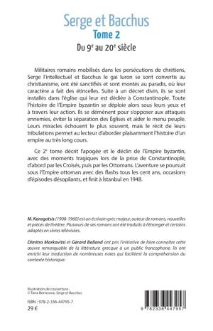 Militaires romains mobilisés dans les persécutions de chrétiens, Serge l'intellectuel et Bacchus le gai luron se sont convertis au christianisme, ont été sanctifiés et sont montés au paradis, où leur caractère a fait des étincelles. Suite à un décret divin, ils se sont installés dans l'église qui leur est dédiée à Constantinople. Toute l'histoire de l'Empire byzantin se déploie alors sous leurs yeux et à travers leur action. Ils se démènent pour s'opposer aux attaques ennemies, éviter la séparation des Églises et aider le menu peuple. Leurs miracles échouent le plus souvent, mais le récit de leurs tribulations permet au lecteur d'aborder plaisamment l'histoire d'un empire au très long cours. Ce 2e tome décrit l'apogée et le déclin de l'Empire byzantin, avec des moments tragiques lors de la prise de Constantinople, d'abord par les Croisés, puis par les Ottomans. L'aventure se poursuit sous l'Empire ottoman avec des flashs tous les cent ans, occasions d'épisodes désopilants, et finit à Istanbul en 1948.