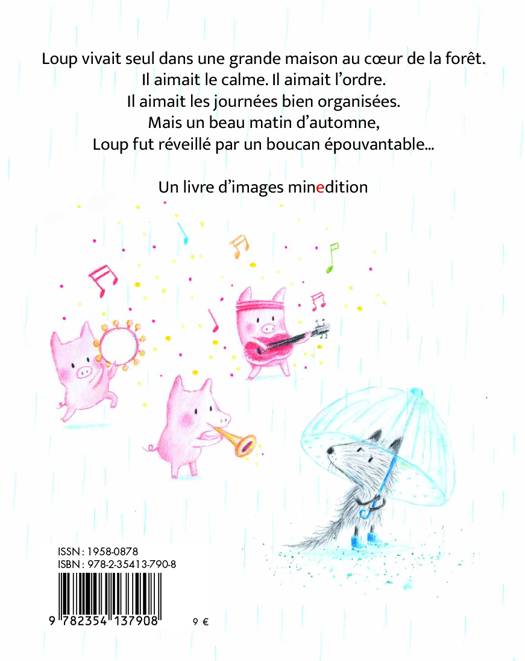 Loup vivait seul dans une maison en brique au fond de la forêt. Il aimait la propreté. Il aimait quand tout était organisé... Mais un matin d’automne, Loup fut réveillé par un boucan épouvantable : trois petits cochons s’installaient dans la clairière voisine ! Tout devint bruyant. Tout devint désordonné. Tout devint imprévu...