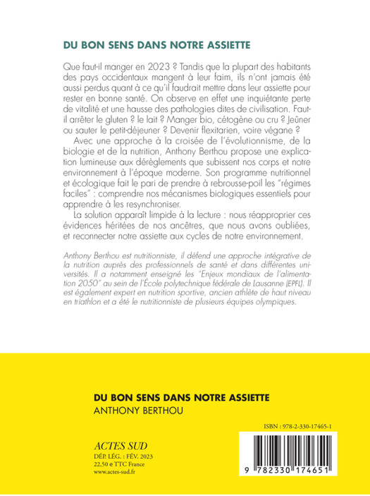 Que faut-il manger en 2023 ? Tandis que la plupart des habitants des pays occidentaux mangent à leur faim, ils n'ont jamais été aussi perdus quant à ce qu'il faudrait mettre dans leur assiette pour rester en bonne santé. On observe en effet une inquiétante perte de vitalité et une hausse des pathologies dites de civilisation. Faut-il arrêter le gluten ? le lait ? Manger bio, cétogène ou cru ? Jeûner ou sauter le petit-déjeuner ? Devenir flexitarien, voire végane ? Avec une approche à la croisée de l'évolutionnisme, de la biologie et de la nutrition, Anthony Berthou propose une explication lumineuse aux dérèglements que subissent nos corps et notre environnement à l'époque moderne. Son programme nutritionnel et écologique fait le pari de prendre à rebrousse-poil les "régimes faciles" : comprendre nos mécanismes biologiques essentiels pour apprendre à les resynchroniser. La solution apparaît limpide à la lecture : nous réapproprier ces évidences héritées de nos ancêtres, que nous avons oubliées, et reconnecter notre assiette aux cycles de notre environnement.