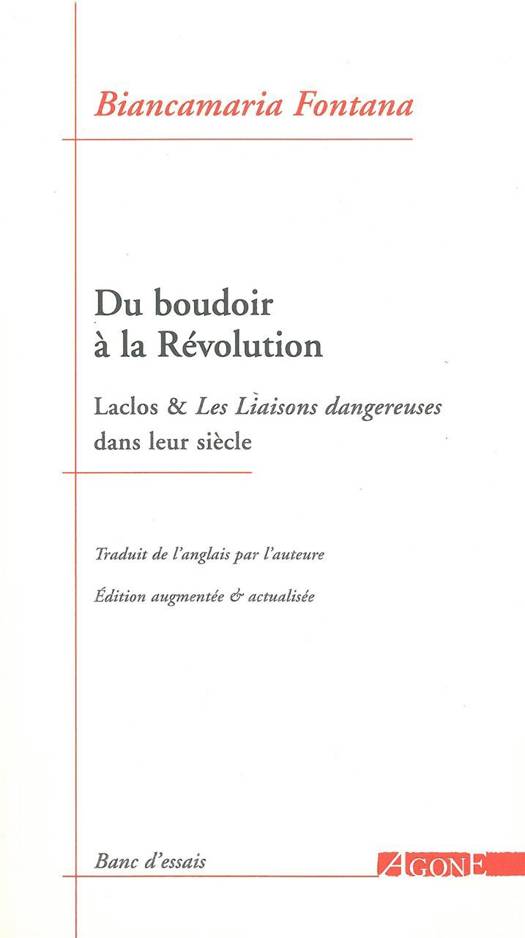 Les Liaisons dangereuses_ est un des chefs-d’œuvres de la littérature en langue française. Mais ce « roman à scandale » est aussi un abrégé de « sagesse concentrée sur les relations sentimentales, sur les règles de base qui les gouvernent et les moyens par lesquels elles peuvent être manipulées à l’avantage de quelqu'un » : un récit remarquable par sa clarté, sa franchise inégalée, sa simplicité, son détachement et la « rigueur d’une approche qui, en dépit de sa sophistication aristocratique et du temps qui passe, le rendent éminemment accessible au lecteur moderne ». Si Du boudoir à la Révolution revient sur tous ces thèmes, qu’il replace dans leur contexte de production et de réception, ce court essai incisif croise les personnages de fiction avec la biographie de Laclos (jeune capitaine, époux puis révolutionnaire jacobin et enfin officier de Napoléon), pour mettre à jour les qualités intellectuelles et le contenu même de la pensée d’un écrivain immergé dans une époque d’expérimentation des questions morales et politiques qui continue de questionner les nôtres. Les écrits sur Les Liaisons dangereuses sont évidement nombreux (sans parler des interprétations cinématographiques, théâtrales, etc.) et certains sont d’une valeur intellectuelle et d’une érudition incontestables. Mais la majeure partie de ces études ont un style très académique et une approche quelque peu technique « comme si le contenu passionnant du roman devait être compensé par le caractère cryptique et abscons des commentaires qu’il inspire ». S’appuyant sur tout qui permet de rendre au mieux la vision personnelle de Laclos (histoire, biographie, philosophie, critique littéraire, fiction), l’auteure développe un récit accessible aux lecteurs qui sont simplement intéressés par la littérature (ou par l’amour) et par la politique sans disposer pour autant de connaissances particulières sur l’histoire du XVIII^e^ siècle et sur les théories littéraires.