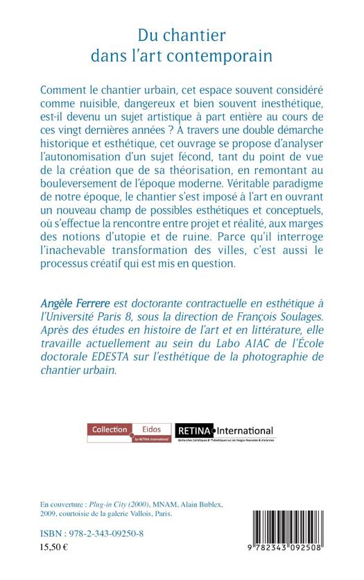 Comment le chantier urbain, cet espace souvent considéré comme nuisible, dangereux et bien souvent inesthétique, est-il devenu un sujet artistique à part entière au cours des vingt dernières années ? Véritable paradigme de notre époque, le chantier s'est imposé à l'art en ouvrant un nouveau champ de possibles esthétiques et conceptuels, où s'effectue la rencontre entre projet et réalité, aux marges des notions d'utopie et de ruine. Parce qu'il interroge l'inachevable transformation des villes, c'est aussi le processus créatif qui est mis en question.