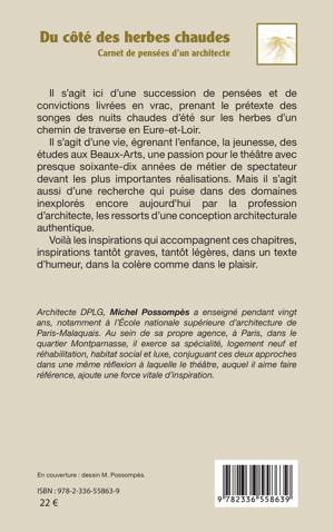 Il s'agit ici d'une succession de pensées et de convictions livrées en vrac, prenant le prétexte des songes des nuits chaudes d'été sur les herbes d'un chemin de traverse en Eure-et-Loir. Il s'agit d'une vie, égrenant l'enfance, la jeunesse, des études aux Beaux-Arts, une passion pour le théâtre avec presque soixante-dix années de métier de spectateur devant les plus importantes réalisations. Mais il s'agit aussi d'une recherche qui puise dans des domaines inexplorés encore aujourd'hui par la profession d'architecte, les ressorts d'une conception architecturale authentique. Voilà les inspirations qui accompagnent ces chapitres, inspirations tantôt graves, tantôt légères, dans un texte d'humeur, dans la colère comme dans le plaisir.