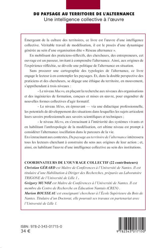 Émergeant de la culture des territoires, ce livre est l'œuvre d'une intelligence collective. Véritable travail de modélisation, il est le procès d'une dynamique générée au sein d'une organisation dite « Réseau alternance ». En mobilisant des praticiens-réflexifs, des chercheurs, des entrepreneurs, cet ouvrage est un passeur, invitant à comprendre l'alternance.