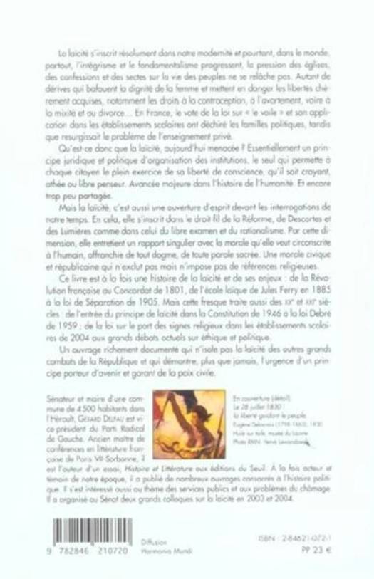 Afin d'éclairer les débats en cours sur la laïcité, l'auteur revient sur ce principe juridique et politique d'organisation des institutions. Il défend la laïcité en tant qu'état d'esprit, règle de comportement social et initiation au savoir et à la connaissance, qui impose un rapport personnel à la morale en l'excluant du dogme et responsabilise ainsi le citoyen.