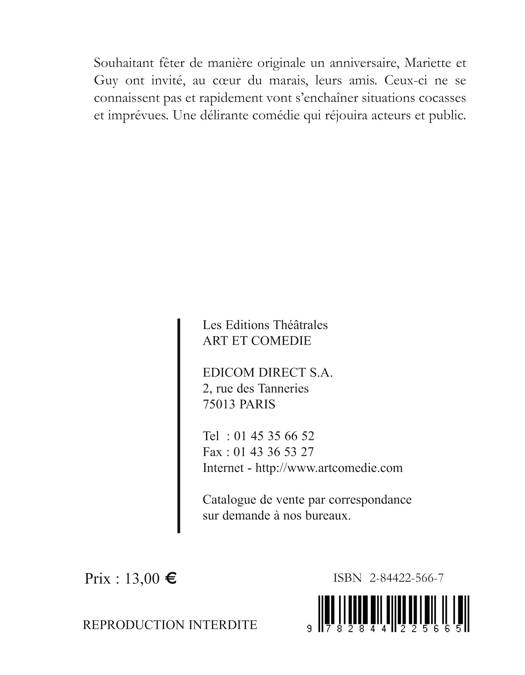 Souhaitant fêter de manière originale un anniversaire, Mariette et Guy ont invité, au coeur du marais, leurs amis. Ceux-ci ne se connaissent pas et rapidement vont s'enchaîner situations cocasses et imprévues. Une délirante comédie qui réjouira acteurs et public.